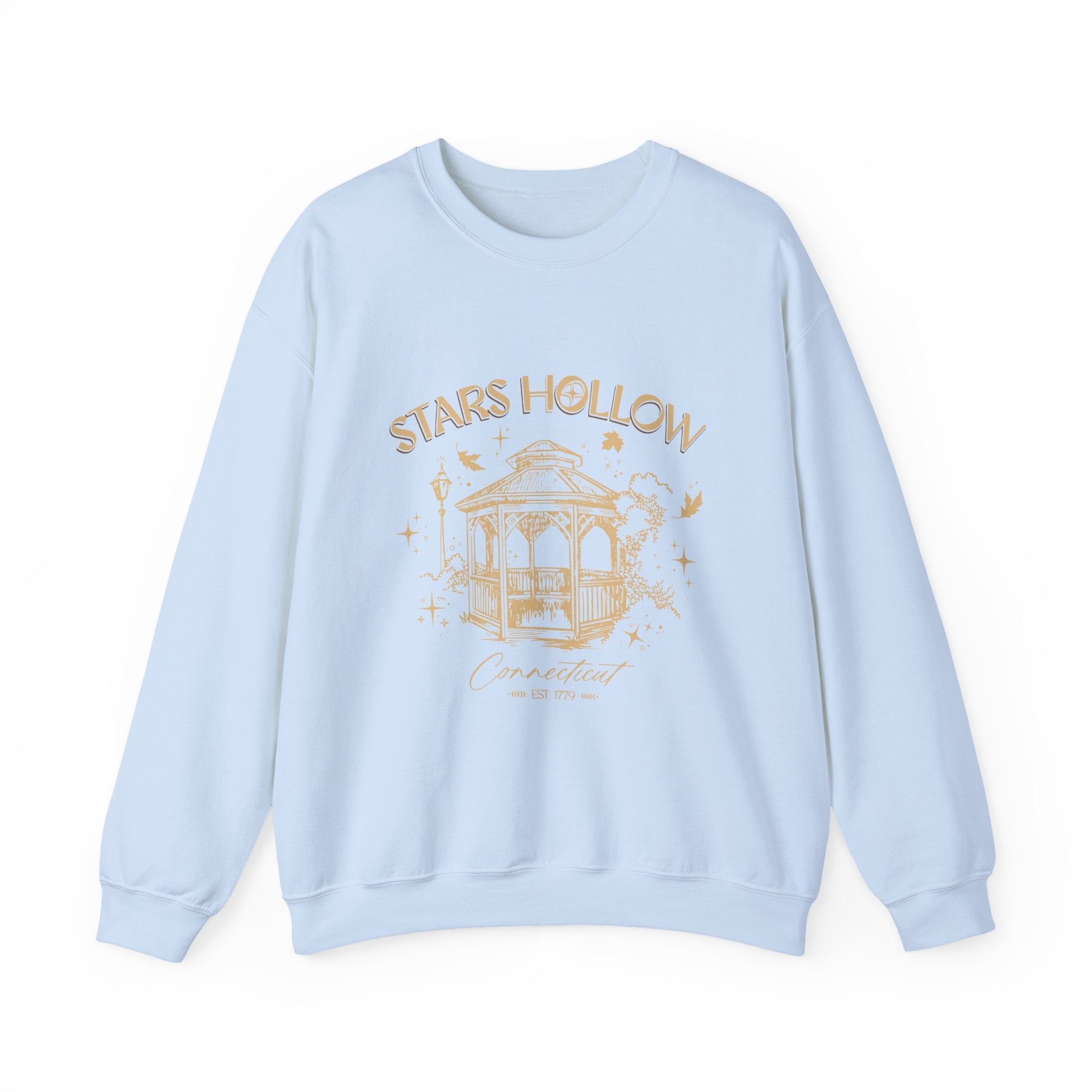 Stay cozy and stylish with this Gilmore Girls Stars Hollow Gold Gazebo Graphic Sweatshirt. Perfect for fans of the show, it exudes a nostalgic and warm vibe, ideal for lounging around or running errands. A must-have for Gilmore Girls enthusiasts, especially during binge-watching sessions or cozy nights in.